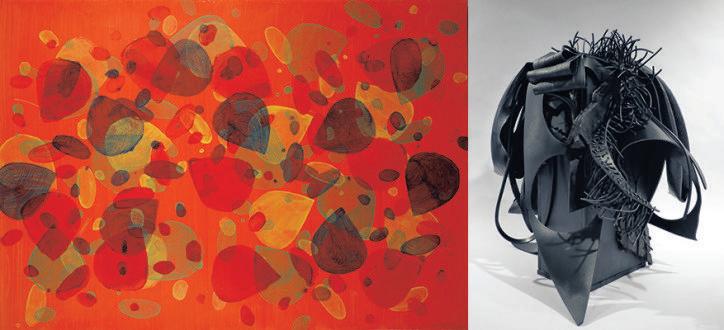 of art, including her early 1950s avant-garde prints; her sculptures in marble, wood, concrete, and synthetic fiber from the 1970s and 1980s; her signature series of ovoidal paintings; and her graphic drawings dating from 2004 to 2019.