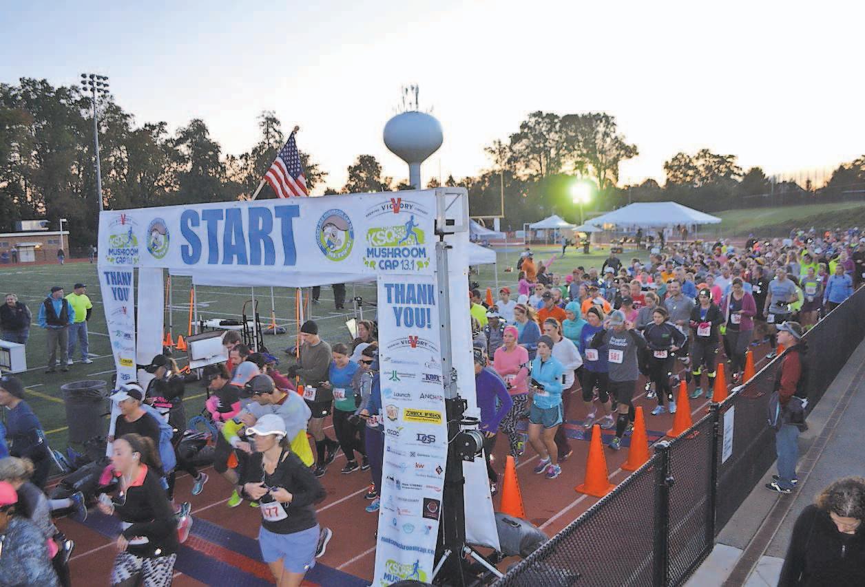 When 700 competitors in the first KSQ Victory Mushroom Cap 13.1 race in Kennett Square first arrived at the Kennett High School track in the early morning of Oct. 15, 2016, they stretched and limbered up nearly in darkness. By the time the race started soon after, they ran through Willowdale, along North Mill Road, Poplar Tree Road and Wollaston Road with the newly-risen sun against their backs.