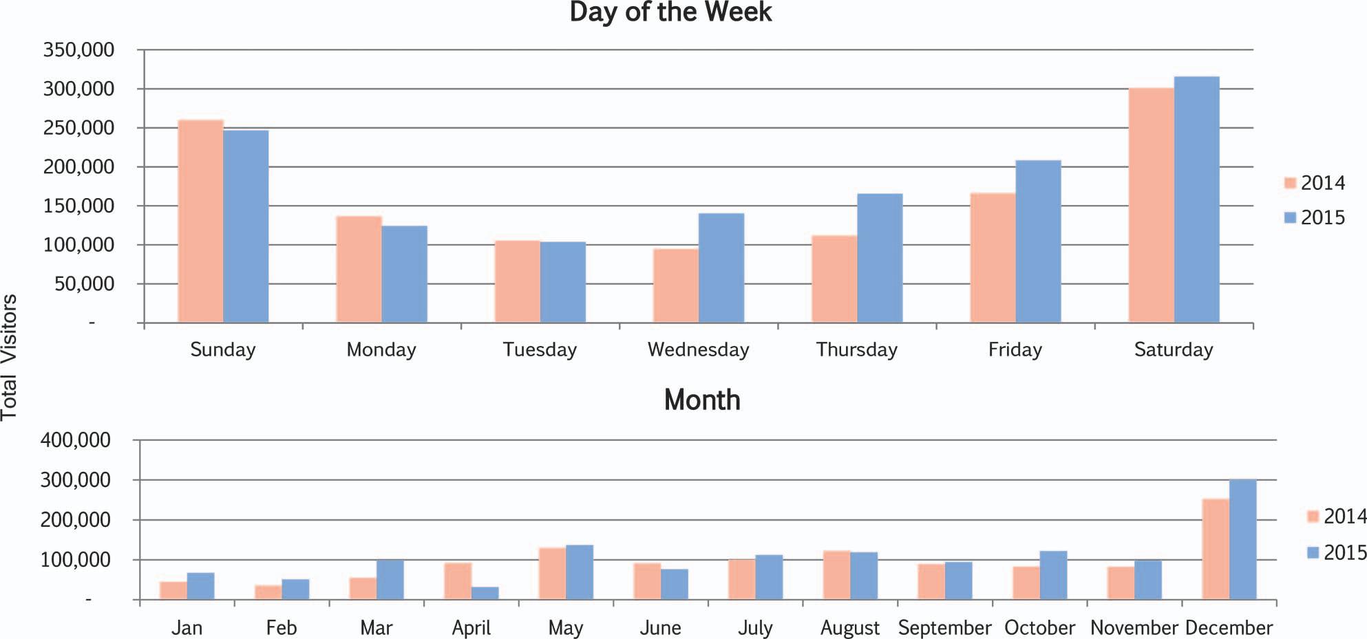 with the highest number of visitors on Sundays. There is also a large seasonal peak, with the Christmas season drawing the most visitors. In fact, December visitors are nearly double the number of visitors in May, the second highest month. Accommodating tourists traveling in the area could be one goal if public transportation services were increased.