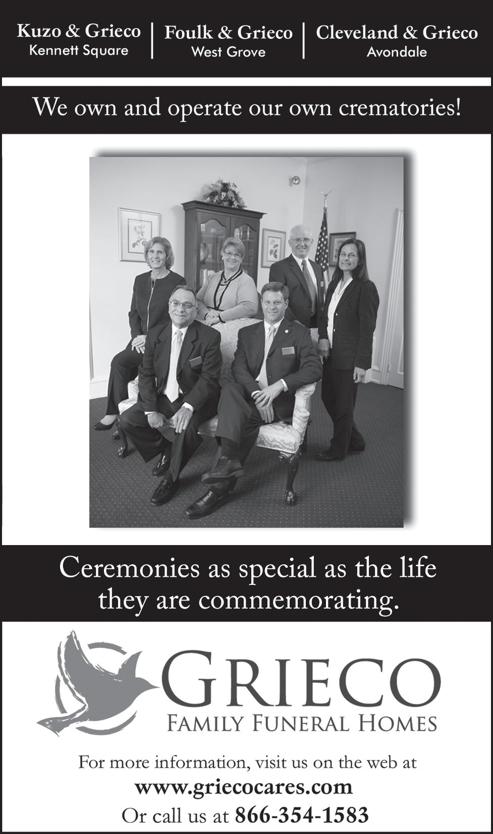 A funeral was held March 21. Interment was in Union Hill Cemetery in Kennett Square. To view her online tribute and to share a memory with her family, visit www.griecocares.com.