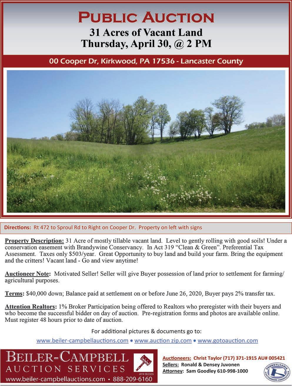SALE ADDRESS: 694 Elk Ridge Road, Oxford, PA 19363