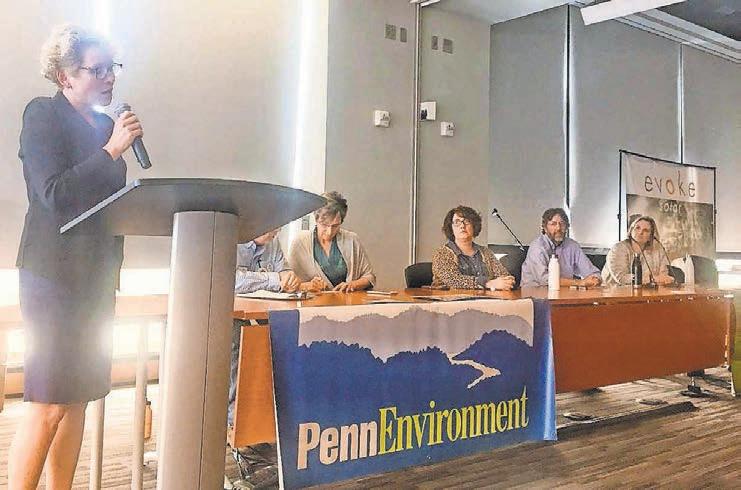 Club Chair Jim Wylie, West Chester Borough’s Mayor Dianne Herrin and Practical Energy Solutions President Paul Spiegel. The panel was moderated by Jess Cadorette, PennEnvironment’s Chester County organizer.
