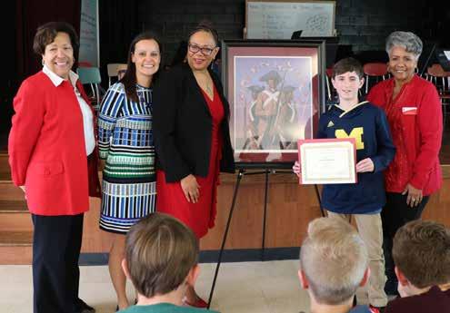 Representatives from the Valley Forge Alumnae Chapter of Delta Sigma Theta Sorority recognized FSEMS student Lucas Dusseau for winning the 2019 Patriot’s Challenge. From left: Kim Singleton (Partriots Committee Co-Chair), Kelly Luckowski (FSEMS teacher), Alexis M. Brown (Patriots Committee Chair), Lucas Dusseau (contest winner) and Pat Blassingale (Chapter President).