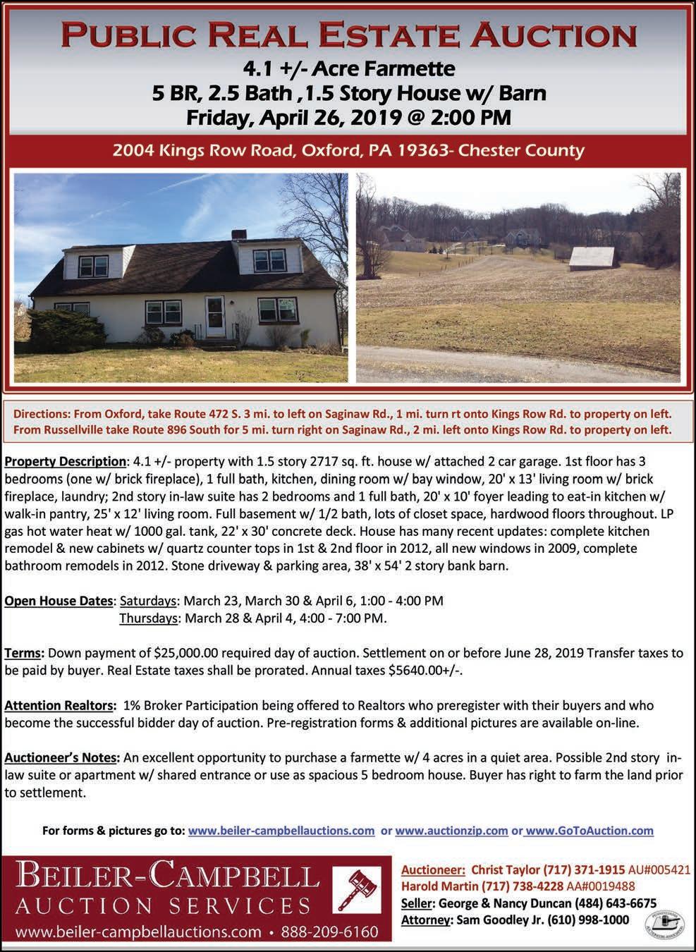 SALE ADDRESS: 731 Hillcrest Drive, Atglen, Pennsylvania 19310