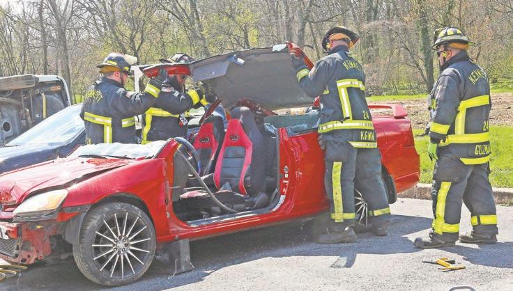 Kennett Fire Company firefighters showed off their skills and equipment at a public event on April 13, thanks to efforts of their Chief and an aspiring Eagle Scout.