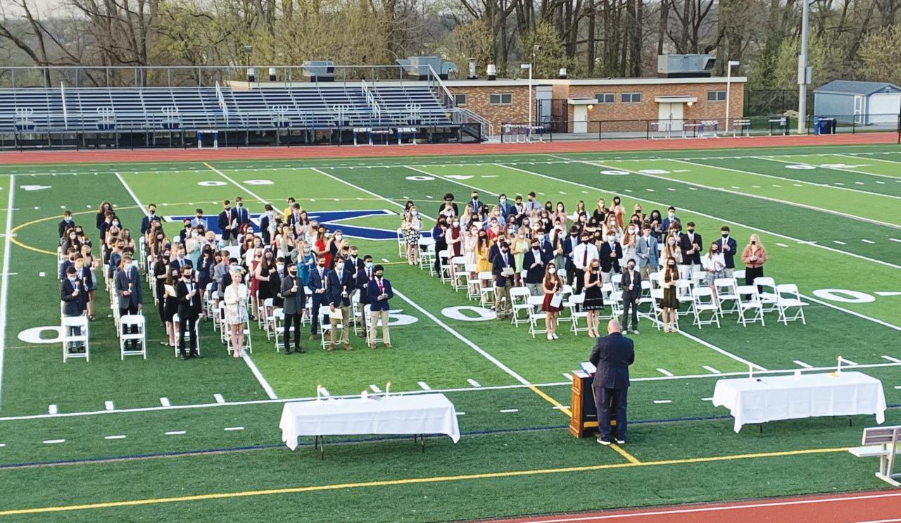 The Kennett High School Blue and White Chapter of the National Honor Society (NHS) welcomed both the 2019-2020 and 2020-2021 inductees at a ceremony and reception on April 7.