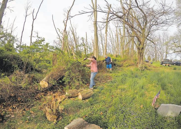 weekend, and they will return as often as possible, DeHaut said. “Our hope is to get it done by July 4, but at the latest, sometime in August,” he said. “We are both looking for community help, and volunteers can just show up. They can contact either of us for a work date. We are looking for people willing to help move wood and get ready for the crane I am trying to get in June to move the larger trees. We would like volunteers to try and bring work gloves if they have them. The main part at the moment is removing brush and smaller trees to prepare for the crane.