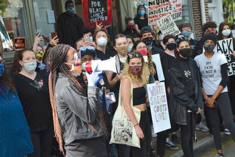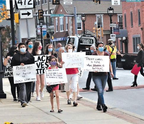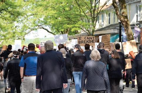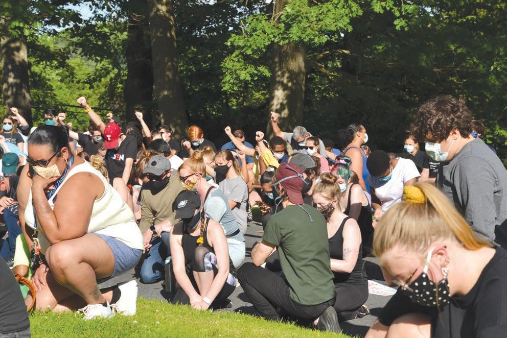 At 5 p.m., a crowd estimated at about 300 filled the common area near the West Grove Library as part of a peaceful Black Lives Matter event that included a unified march through the borough, three public speeches and an eight-minute, forty-six second moment of silence to honor the memory of George Floyd, who was killed on May 25 in Minneapolis, Minn. at the hands of Minneapolis police officer Derek Chauvin and three other officers, who stood idle while Chauvin jammed his knee into Floyd’s neck for that length of time, suffocating Floyd.