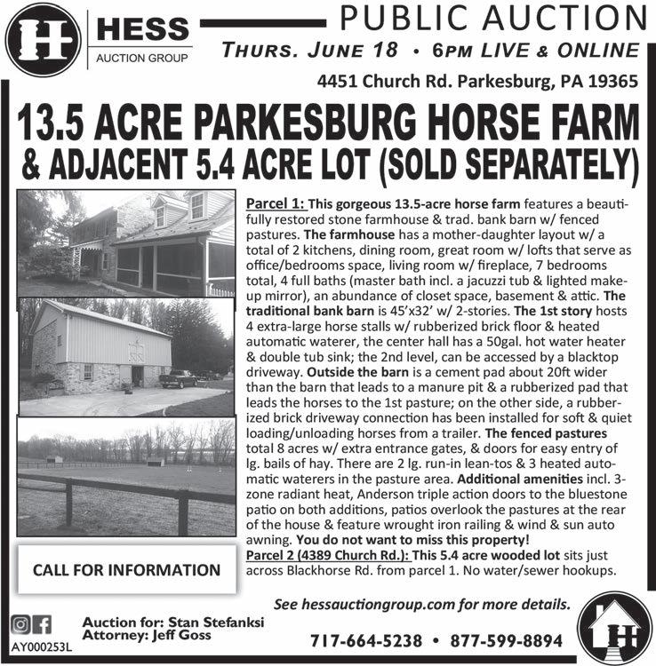 be sold at public sale in the Chester County Justice Center at 201 W Market Street, 3rd Floor, Room 3300, West Chester, Pennsylvania, as announced on Thursday, June 18th, 2020 at 11AM.