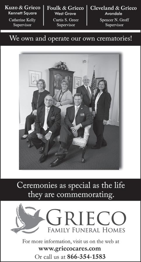 A visitation will be held from 6 to 8 p.m. July 13 at the Kuzo & Grieco Funeral Home (250 W. State St., Kennett Square). Burial will be held privately. In lieu of flowers, please consider a donation to charity in honor of Margaret. To view her online tribute and to share a memory with her family, visit www.griecocares.com.