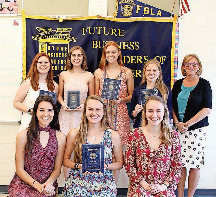 Front from left are Amy Swisher, coach; Sierra DiFrancesco, Mackenzie Clark, GuadalupeJuarezZavala and Principal Dr. Nicole Addis; second row from left, Ava Corcoran, Brandee Levinsky and Jack DeGrave; top from left, Assistant Principal Jason Soule, Ryan Steinmetz, Julia Kahn, captain; Erin Chapin and Elizabeth Evans-Ralston. Emma Zaleski is not pictured.