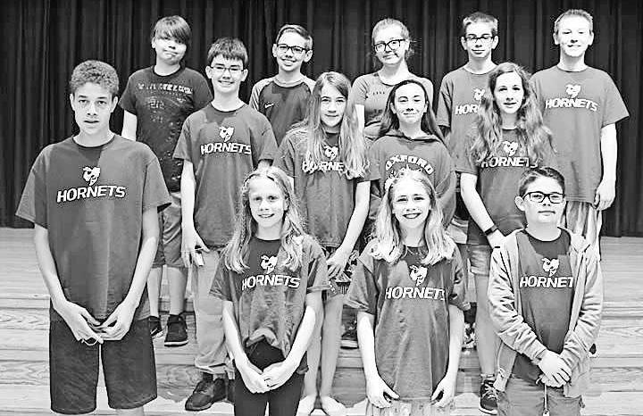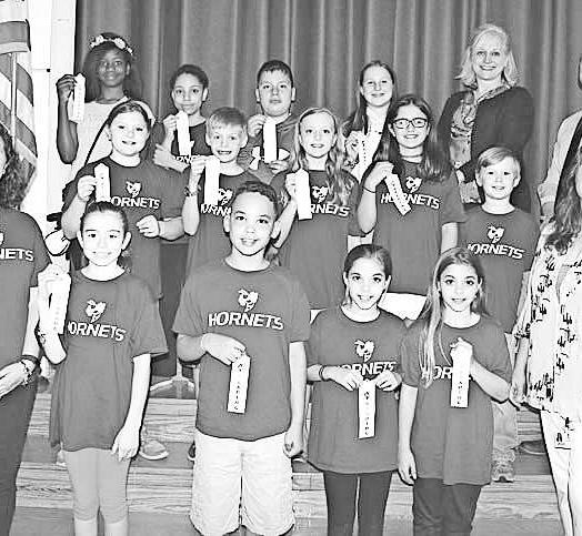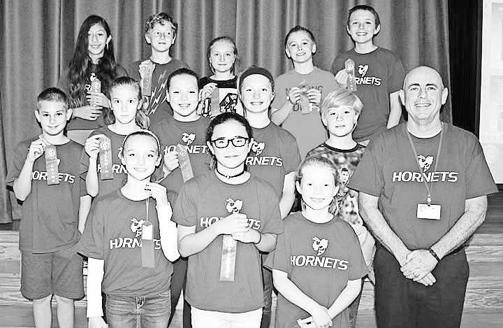 The Hopewell Elementary School fifth grade “Hopewell Hornets” earned red ribbons in the elementary level of the Chester County Reading Olympics. Front from left are Julia Carey, Alayna Valentin, Elizabeth Kiernan, captain; and Daniel O’Brien, coach; middle from left, Jacob Walsh, Jessica Repetz, Sydney Dunlap, Sullivan Mecouch and Matthew Thompson; top from left, Shayna Wise, Joshua Terry, Lexi Fleischer, Noah Topmiller and James Higgins.