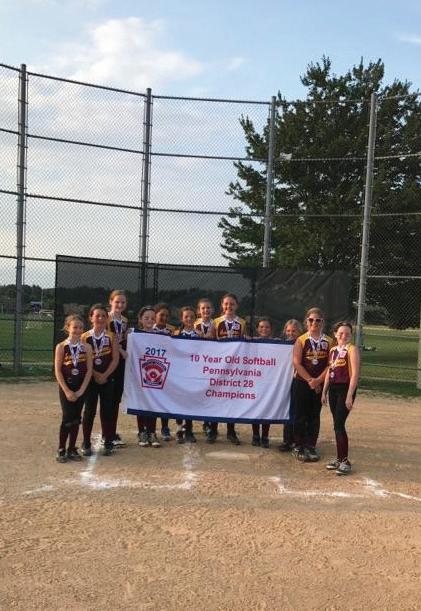 This month, the Avon Grove Area Little League 10U All Star Softball Team was crowned the District 28 and Section 7 winners. The team earned a spot in the Pennsylvania State Championships. The tournament for the State Championship title began on July 18. The players on the Avon Grove district championship team are Gabriella Beltran, Ashley