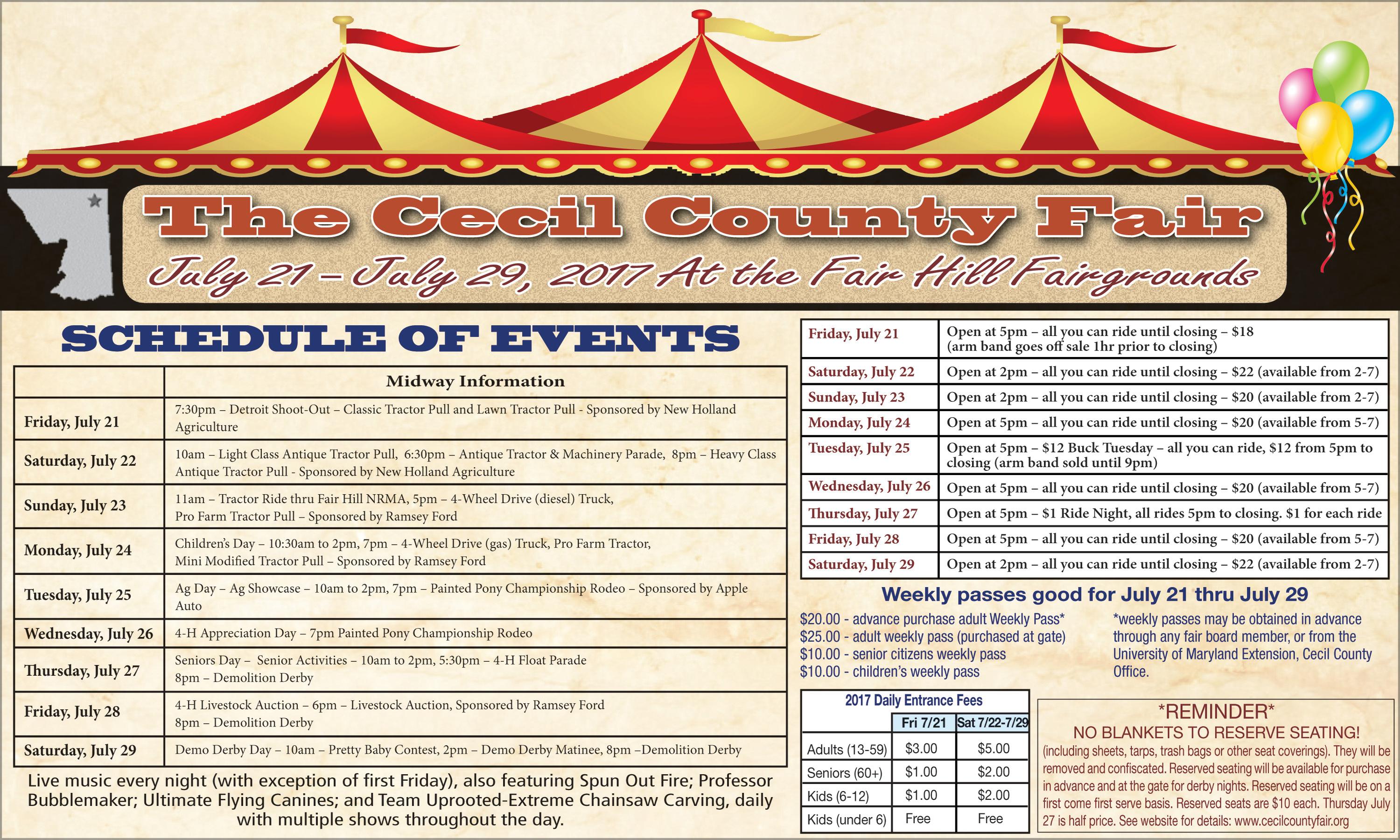The show is scheduled July 21, 22, 27, 28 and 29