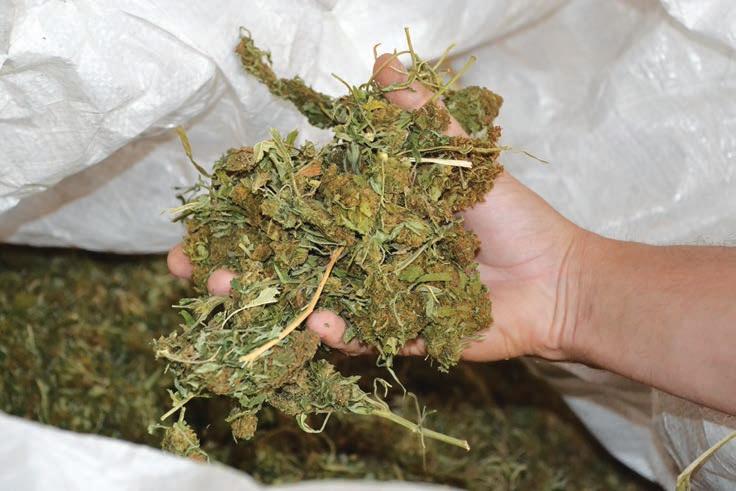 burst through black tarpaulin in the sun, while in a nearby barn, huge sacks of harvested hemp waited to be converted into hemp (CBD) oil and distributed worldwide for its holistic benefits as it has been reported to address chronic pain, epilepsy and inflammatory conditions.