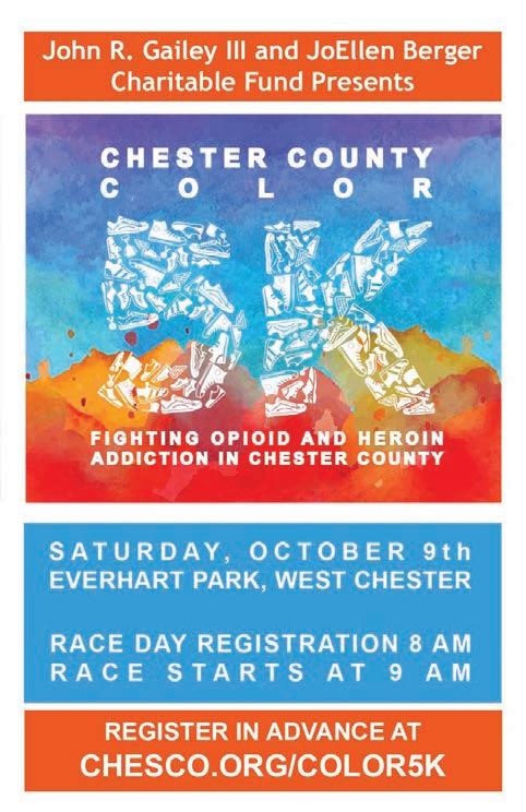 This year’s Color 5K will take place at Everhart Park in West Chester on Oct. 9. Pre-race registration is open now for individuals and teams, at www.chesco. org/color5k. Race-day registration begins at 8 a.m. and the race starts at 9 a.m.