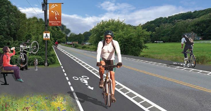 Major project recommendations included 20 miles of bicycle and pedestrian improvements along Baltimore Pike to create a unified “Baltimore Pike Bikeway,” and two multiuse trails along the U.S. Route 1 Expressway: one in the Kennett area, and one in the Oxford area.