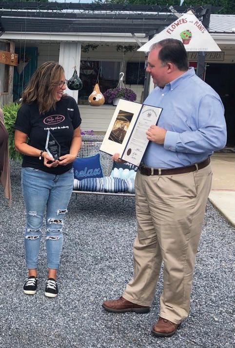 John Lawrence surprised owner Vicki Robinson with a special award from the Chamber in celebration of 100 years.