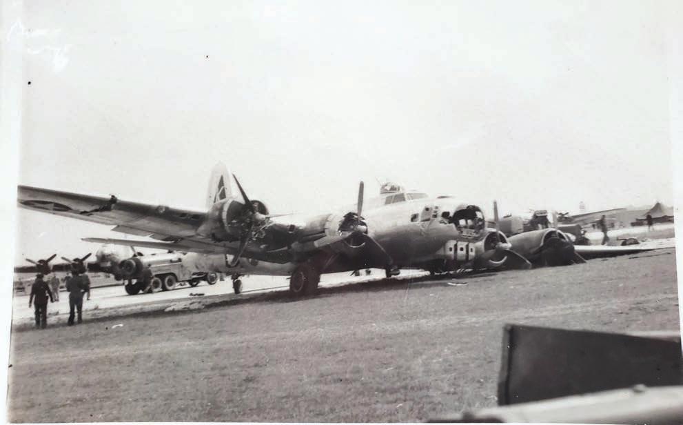 “Something happened to one of our planes from the bomb group next to us. Two of them ran together. They were each carrying 12 500pound bombs on board. One plane exploded about two miles from our base, and when it went down the other one also went down about three miles from base.