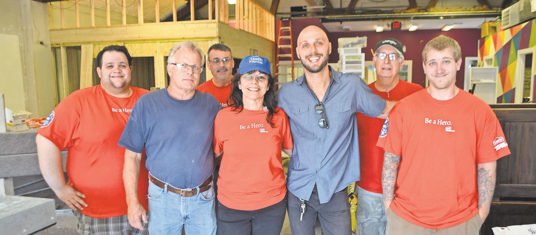 Bill Rose, director of operations for The Garage Community & Youth Center, stands with Lowe’s Heroes project manager Natalie Thomas and a team of Lowe’s volunteers, at The Garage’s West Grove location.
