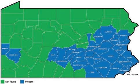 parts of Pennsylvania, New Jersey, Virginia, Maryland and Delaware, as well as detected in the Northeast states of New York, Connecticut, and Massachusetts.