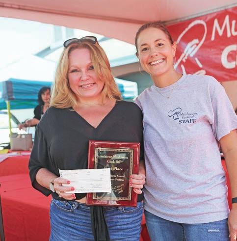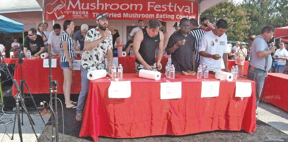 community tent to cheer on the competitors at the amateur cooking and mushroom eating competitions. At those events, Chera Little from Texas won the cooking contest with her Umami Baby Bella Mushroom and Ponzu Egg Drop Soup. Sean Yeager of Phoenixville won the mush-