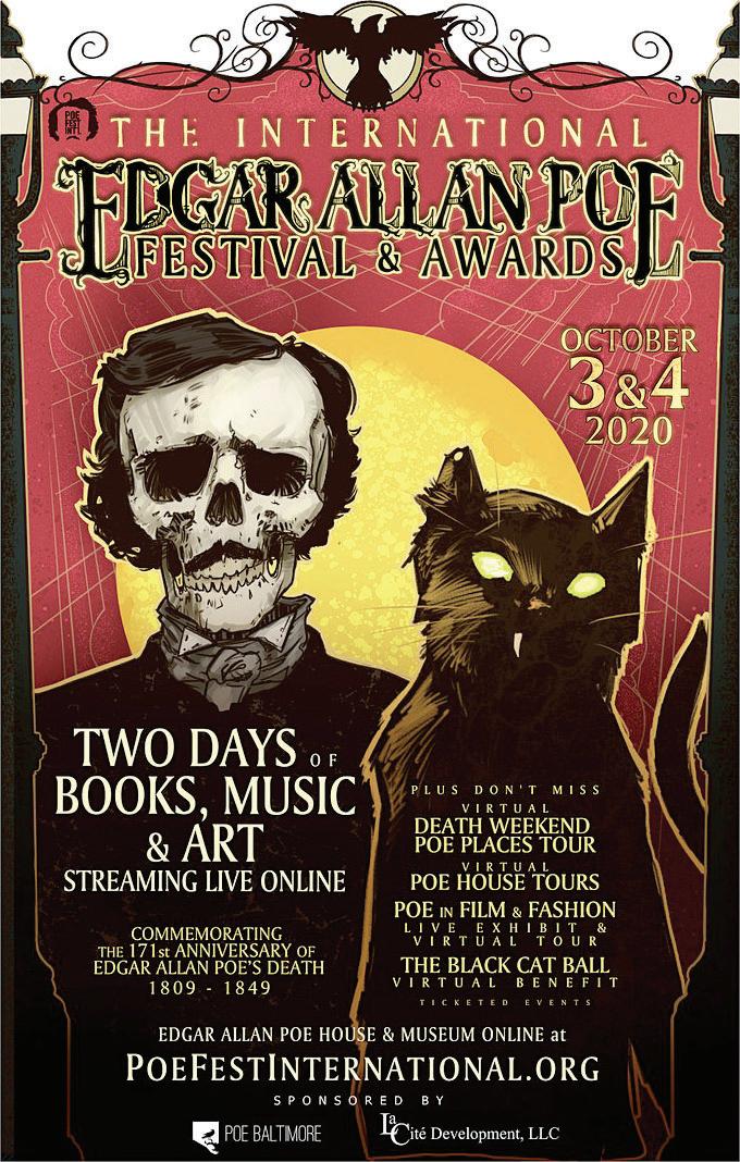 Poe Baltimore will host the third annual International Edgar Allan Poe Festival and Awards online on Oct. 3 and 4. Virtual tours, workshops and watch parties will be a part of the event, which is free and will be live-streamed on poefestinternational.org, Facebook @PoeBaltimore and on YouTube.