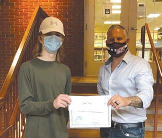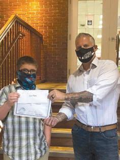 his prize of $200 by Oxford Borough Mayor Phil Harris at the library on Sept. 26. The secondplace tournament winner