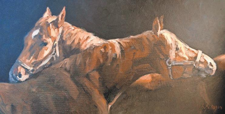 There’s a large gallery of formal animal portraits by Sandra Severson that display her skill with capturing the nobility and dignity of roosters and a fox, for instance. Her views of horses are both tender and strong, showing the interaction of the animals as well as their strength.