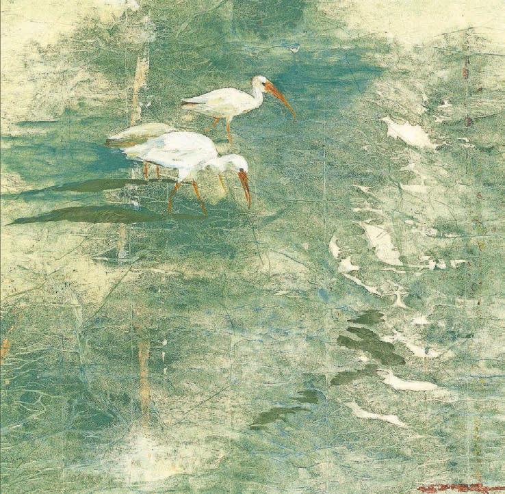 shorebirds a striking texture, like rippled water beneath the birds. It’s a very effective medium, and Cannon’s birds are gracefully depicted.