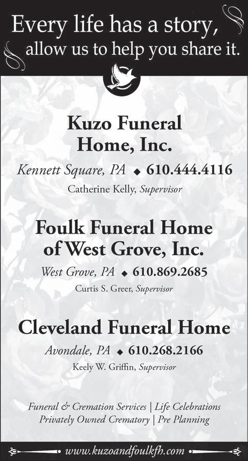 A funeral was held Oct. 12. Interment was in New London Presbyterian Church Cemetery. In lieu of flowers, contributions in his memory may be made to the Cornerstone Presbyterian Church, 109 Gypsy Hill Rd., Landenberg, PA 19350, to benefit the church’s youth program. Online condolences may be made at www.elcollinsfuneralhome.com.