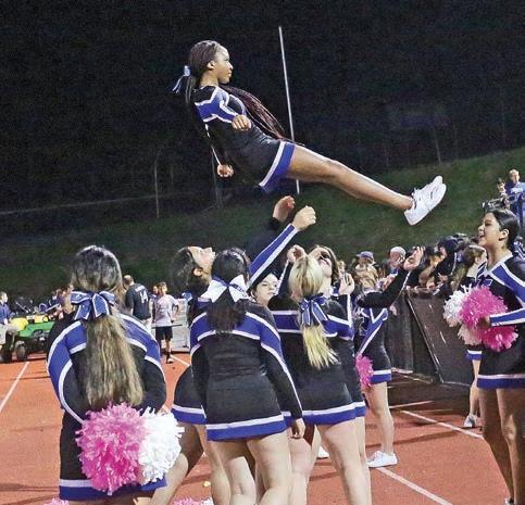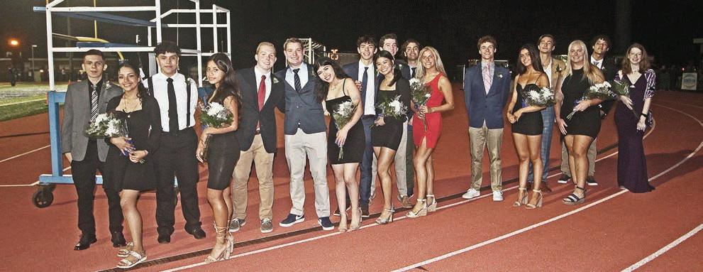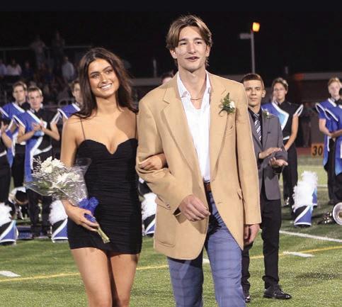 Homecoming Queen Maddie Brooks and King Jesse Comando greet the crowd during the football game’s halftime activities.