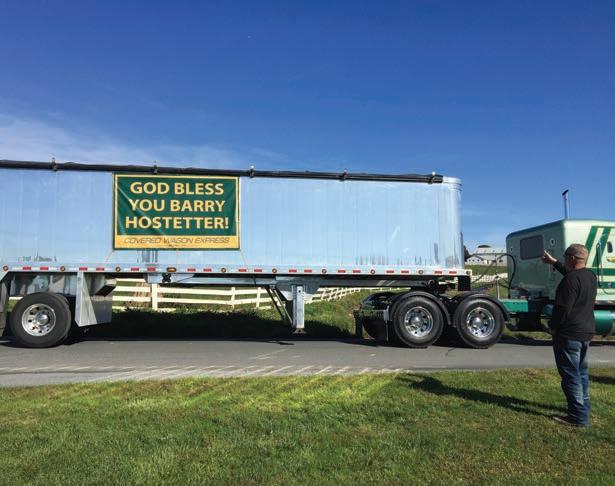 At approximately 10:40 a.m., the prayer parade started and for the next 75 minutes a seemingly endless series of vehicles—milk trucks and John Deere tractors, cars and farm equipment, dump trucks and motorcycles, as well as one tractor trailer after another paraded up the country road that runs right in front of the Hostetters’ home. It was certainly the longest, most beautiful traffic jam in the township’s history.