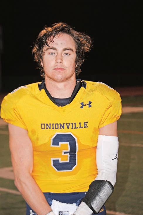 Unionville head coach Pat Clark said that Hower’s kickoff return was a big spark for the Indians. When the team’s defense started the second half by forcing Marple Newtown to punt, it was a big moment in the game. Another big moment came a moment later when Zubillaga sprinted by a defender to haul in a catch that he turned into a 49-yard score. Zubillaga added two points, making it 29-21, when he scored from oneyard out on the two-point conversion.