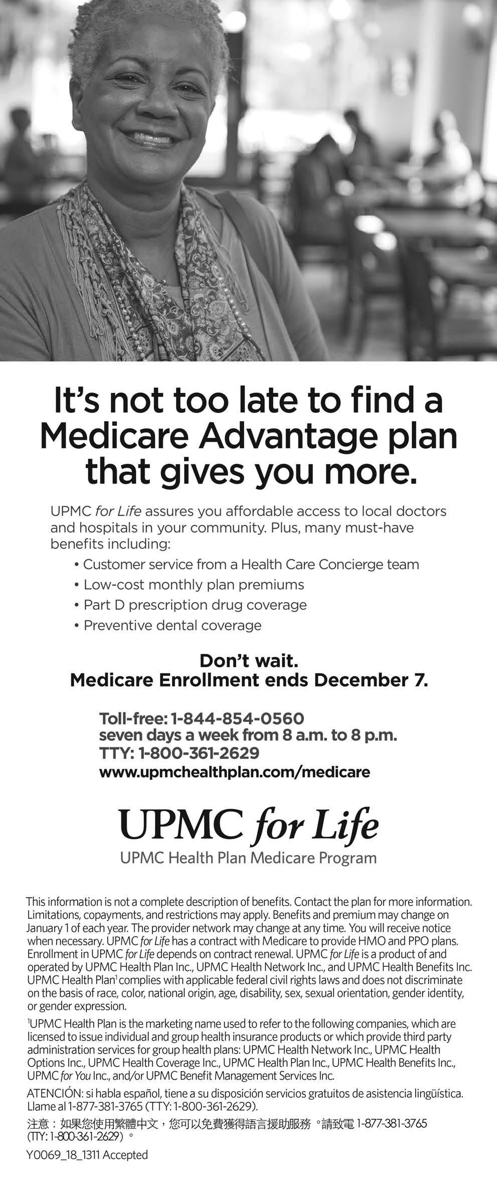 The next monthly Joseph’s People meeting for the unemployed and underemployed will be on Nov. 29 in the parish life center (lower level) of ABVM’s Church (300 State Rd., West Grove). The meeting begins promptly at 7 p.m. The guest speaker will be Rep. John Lawrence, discussing job resources (CareerLink), small business resources (SCORE), Unemployment Compensation and more. For more information, visit www. josephspeople.org.