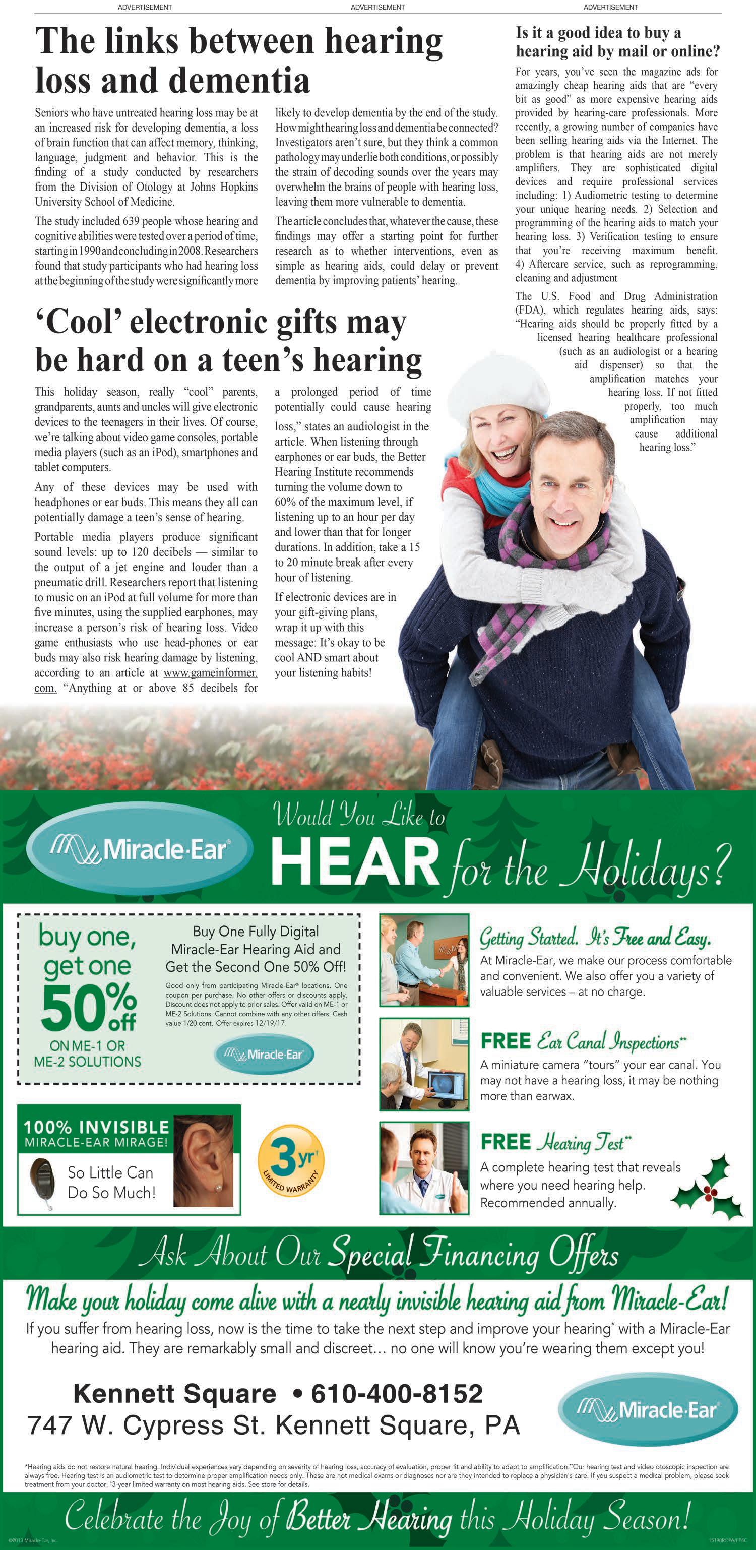 Joseph’s People meeting The monthly Joseph’s People West Grove meeting for the unemployed/underemployed will be on Dec. 20 at 6:45 p.m. In the Parish Life Center of ABVM’s Church (300 State Rd., West Grove). Ruder Schill from Senior Corps of Retired Executives (SCORE) will be the guest speaker. For 31 years, Ruder worked at Hewlett Packard in Avondale. When HP spun off to Agilent Technologies, Ruder continued with Agilent until he retired in 2012. He regularly counsels entrepreneurs in person, and via workshops. Joseph’s People provides prayerful support, introducing community resources, encouraging member interaction and discussing job opportunitie. Visit www.josephspeople.org.