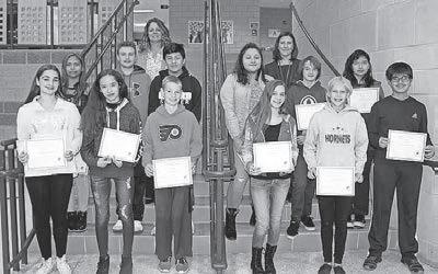 Hopewell Elementary School teachers nominate Students of the Month based on their academic achievements and participation in class and school activities. Pictured with principal Dr. Nicole Addis and assistant principal Jason Soule, fifth grade October Students of the Month are, front row from left, Rebecca Powell, Brandon Cisneros, Nina Cram, Genalyn Mason and Landen Rozich; second row from left, Elliana Gentile, Athena Wilson,