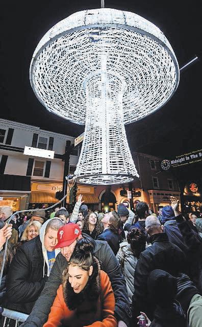 The lighted mushroom will be lowered at the stroke of midnight, ushering in the new year.