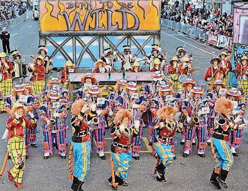entertaining the crowds with their intricate musical arrangements combining string, reed and percussion instruments. Interspersed among the String Bands in the parade on Broad Street will be the Fancy Brigades, hot off their midday performance at the Pennsylvania Convention Center, dressed in sequined costumes, masks, and makeup.