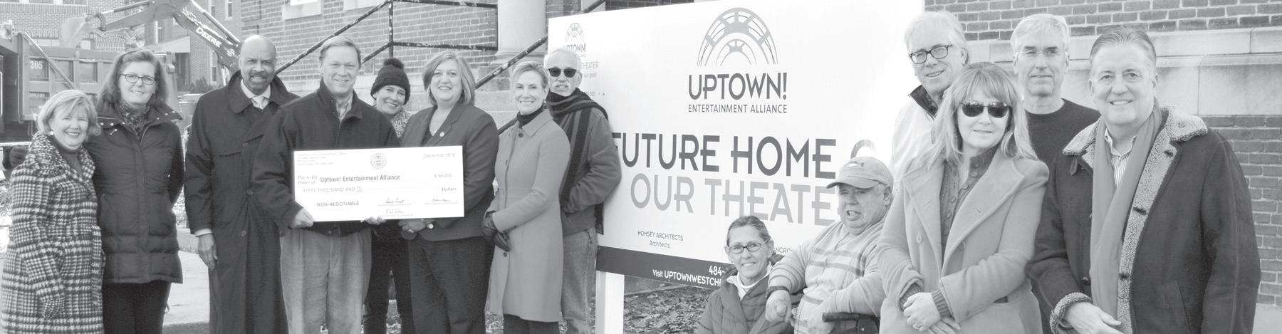 The Chester County Commissioners presented a check for $50,000 to representatives from Uptown! Entertainment Alliance this week. The funds are part of the county’s annual appropriations to organizations and non-profits, and the check was presented in anticipation of the New Year’s Eve opening celebration of the Uptown! Knauer Performing Arts Center.