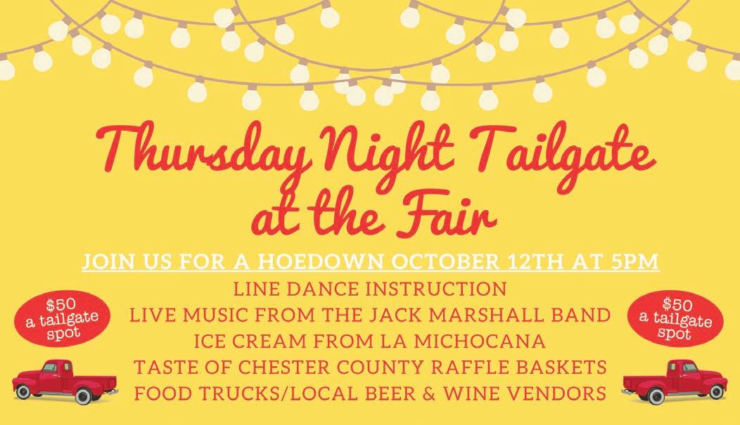 5:00pm - Tail Gate at the Farm Hoedown - $45 for your spot near the stage. See page 71