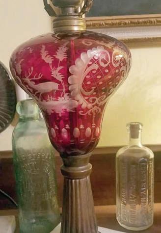 Much of the furniture in Hibernia Mansion today belonged to Swayne, including several of the rugs, most wooden pieces, the pianos, wall decorations, engravings, paintings and major upholstered pieces. All of the furniture in the dining room was Swayne’s. Of particular note in the dining room is his Empire sideboard, with claw feet in back as well as the front. The ballroom has been painted a deep apricot, as it was originally, and the elaborate mirror has been re-gilded.