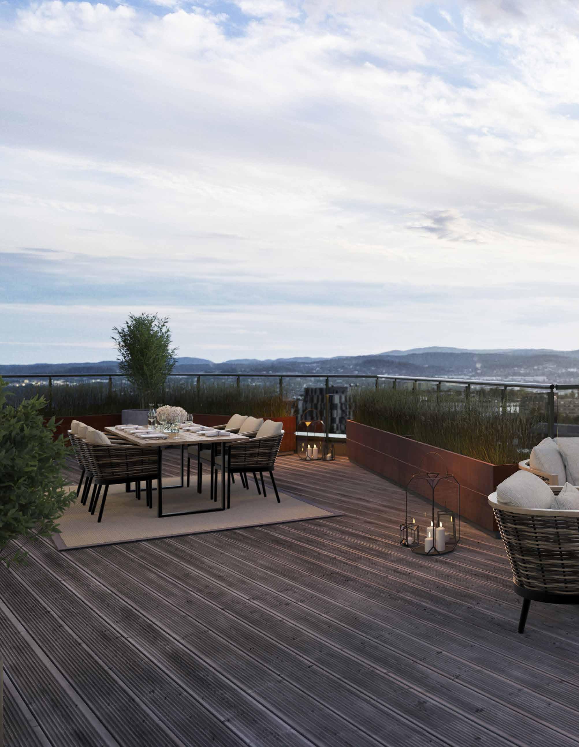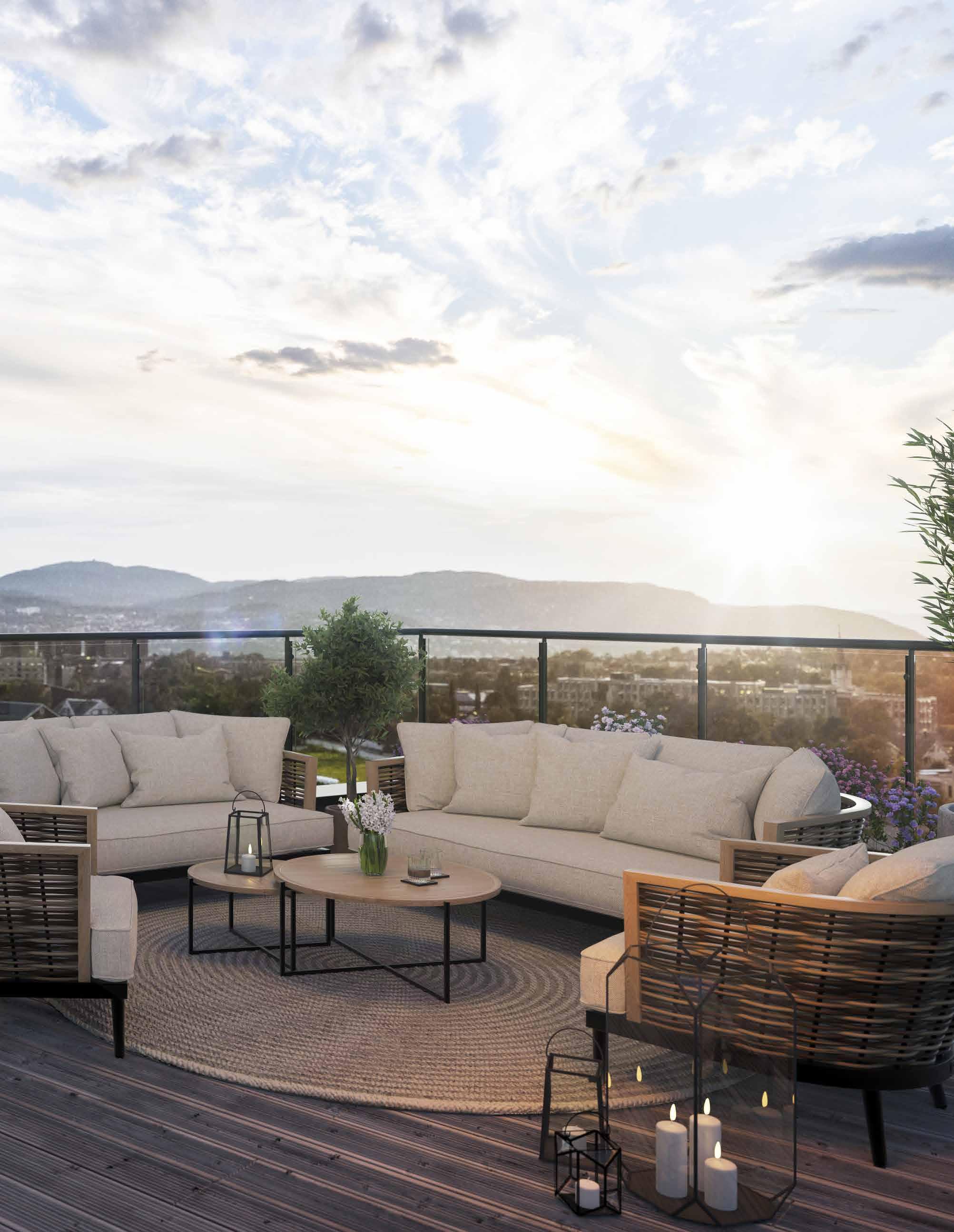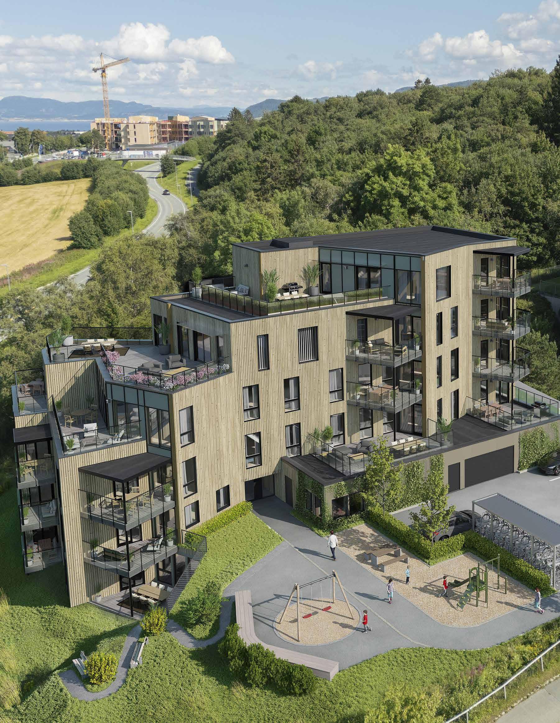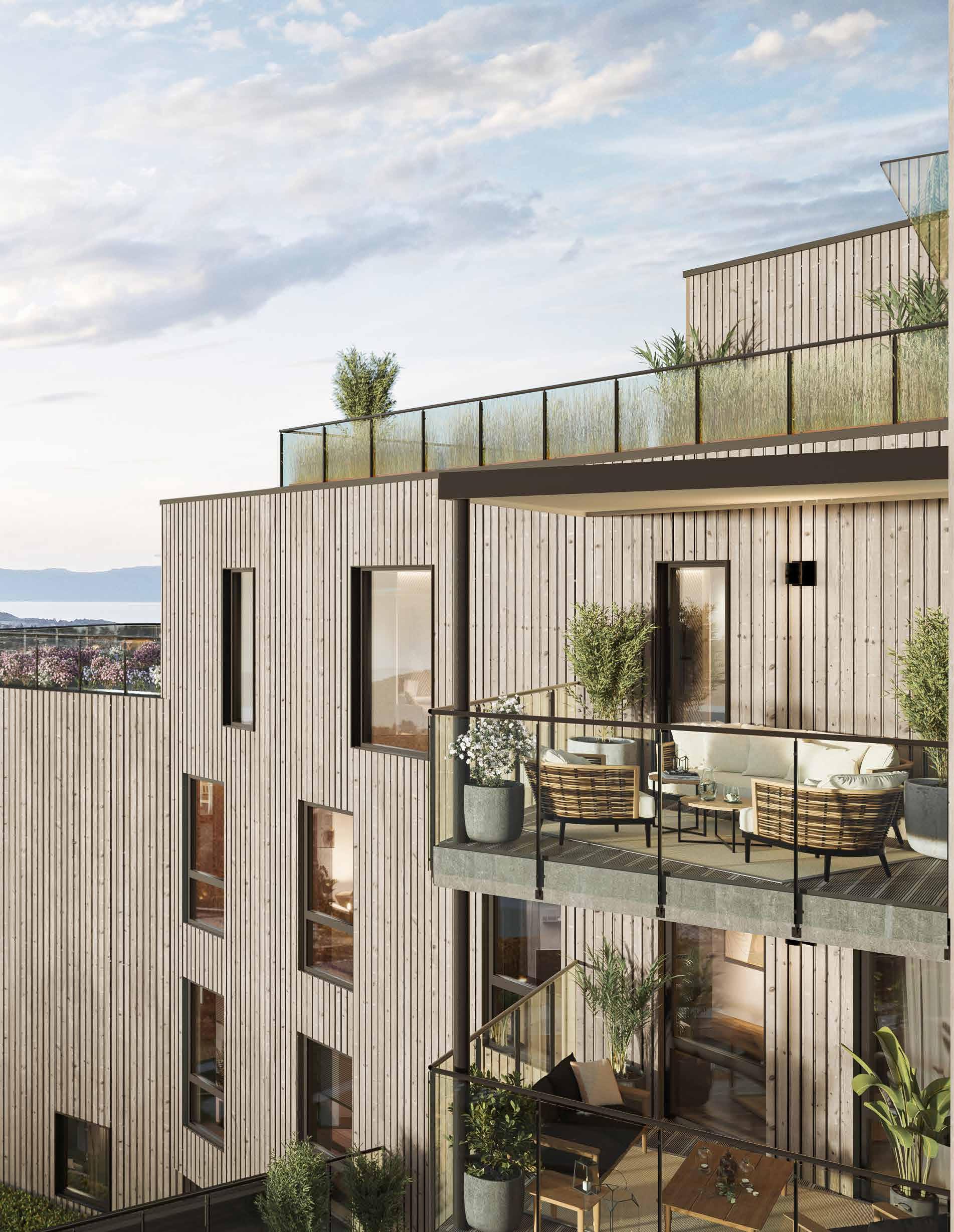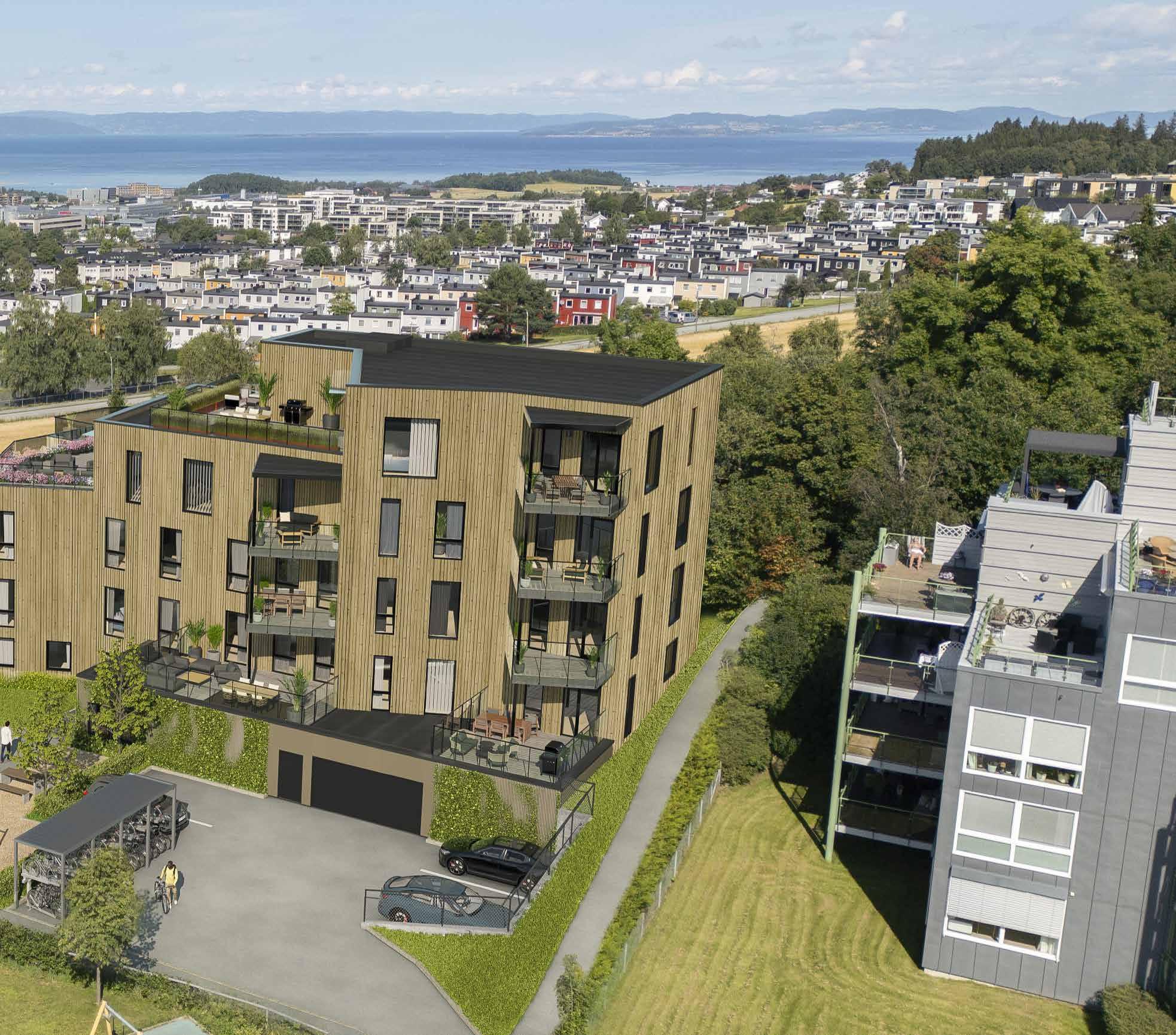 Med spektakulær utsikt over Trondheim og solnedgangen som et vakkert innskudd i hverdagen, kan du finne din drømmebolig blant 15 leiligheter i størrelsen 71 til 160 m².