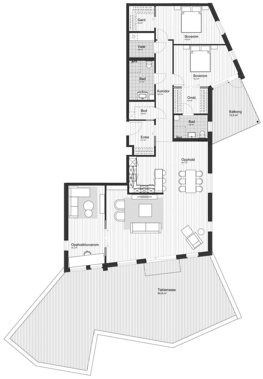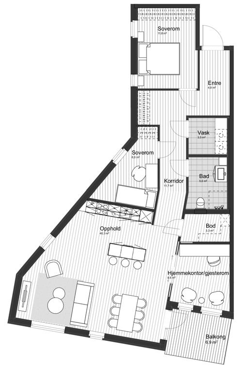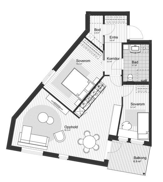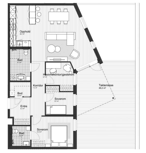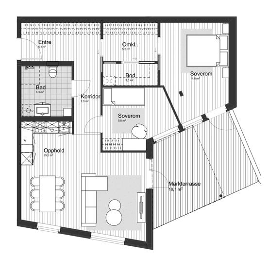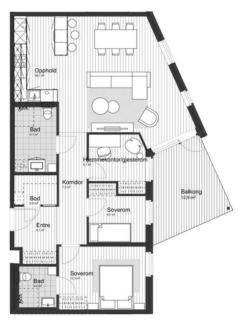 Illustrasjon: leilighet H-0303. Avvik vil forekomme.