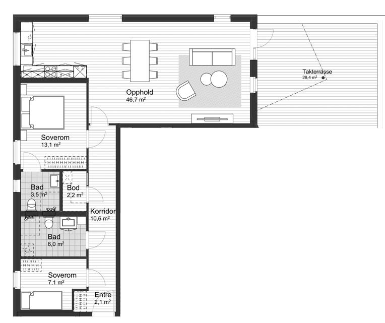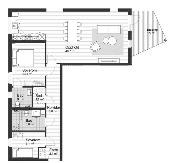 Illustrasjon: leilighet H-0204. Avvik vil forekomme.