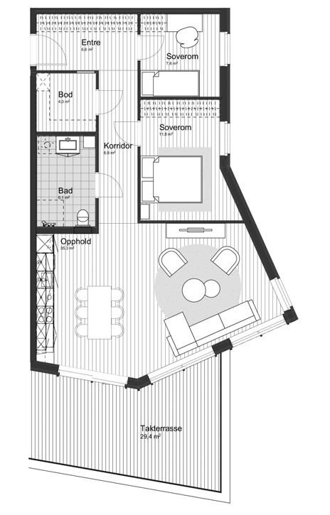Illustrasjon: leilighet H-0402. Avvik vil forekomme.