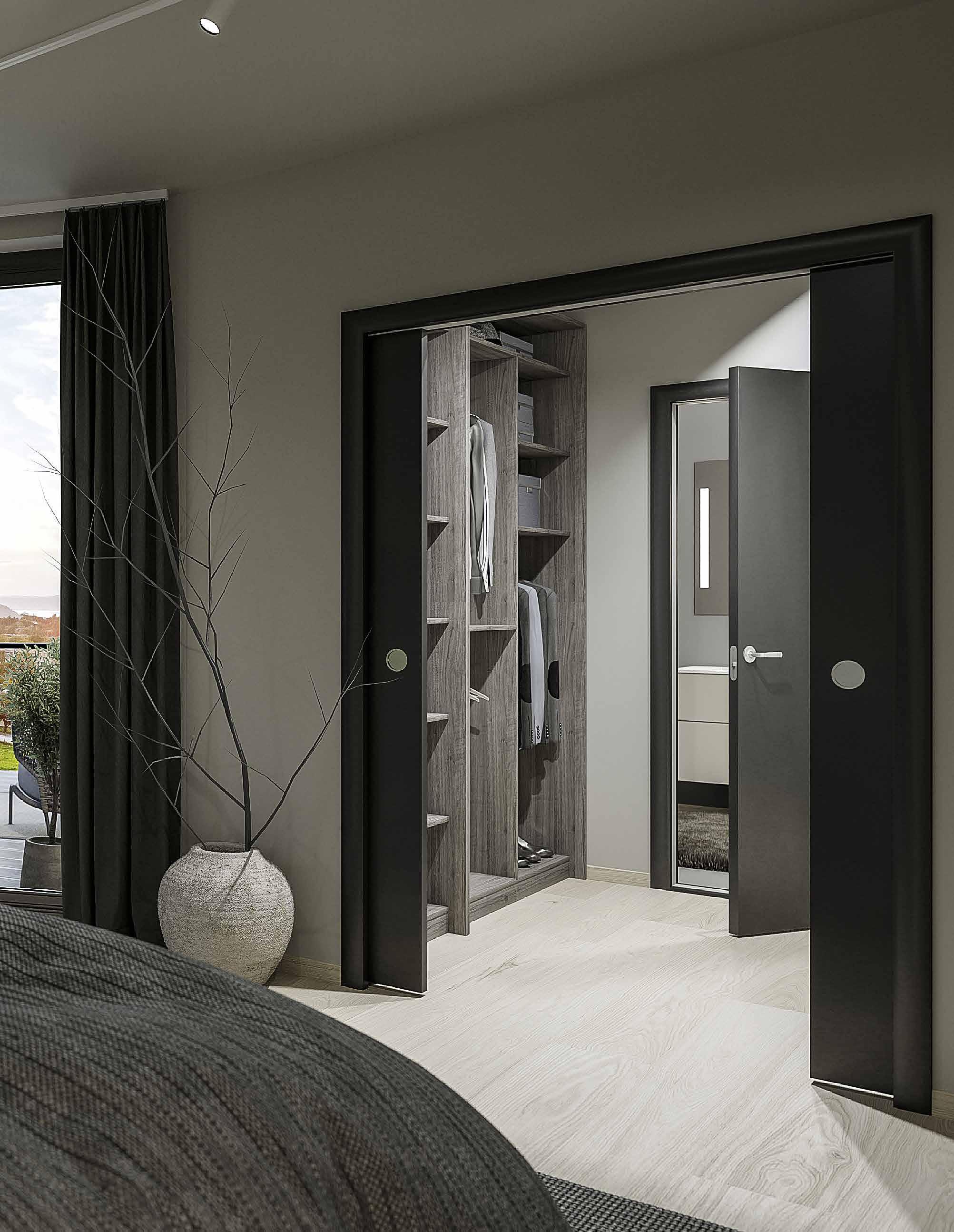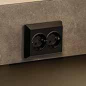 De lavtbyggende, sorte stikkontaktene gir et diskret og elegant design som passer sømløst inn i moderne hjem. Ideelt for minimalistiske interiørstiler, der detaljer skal fremheve rommet.