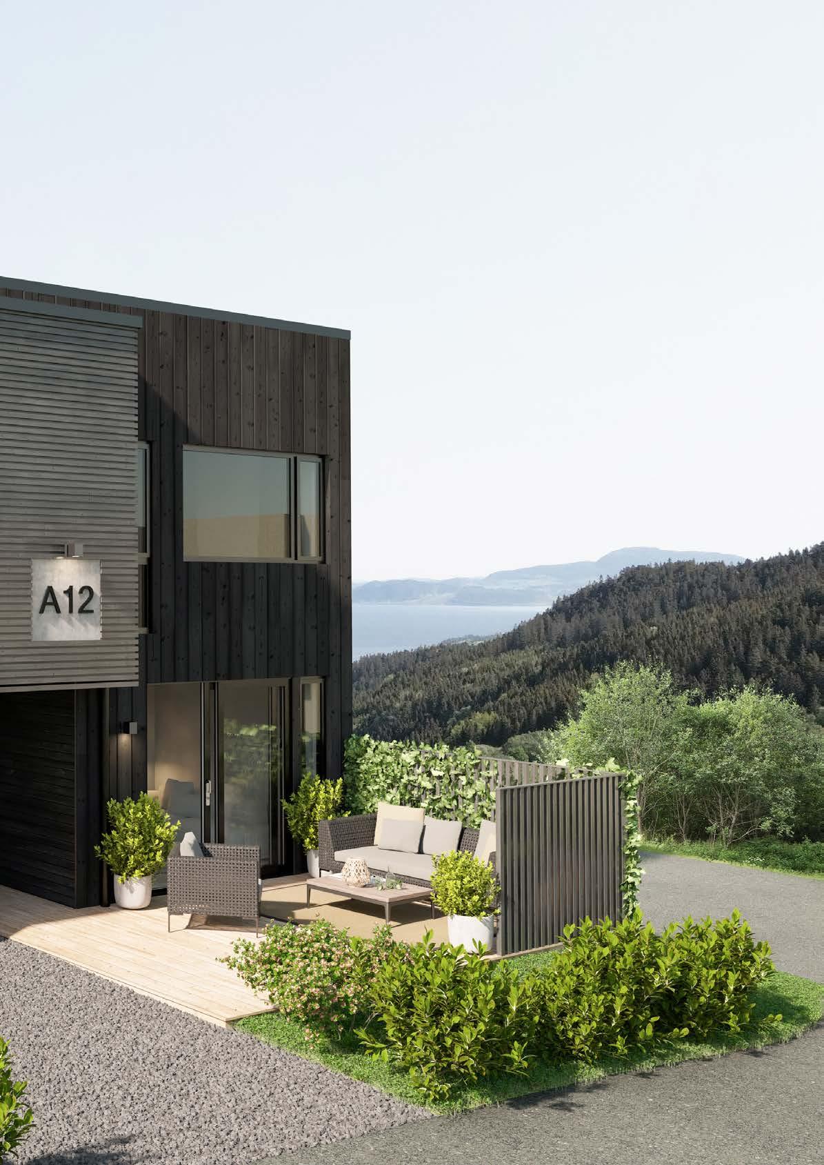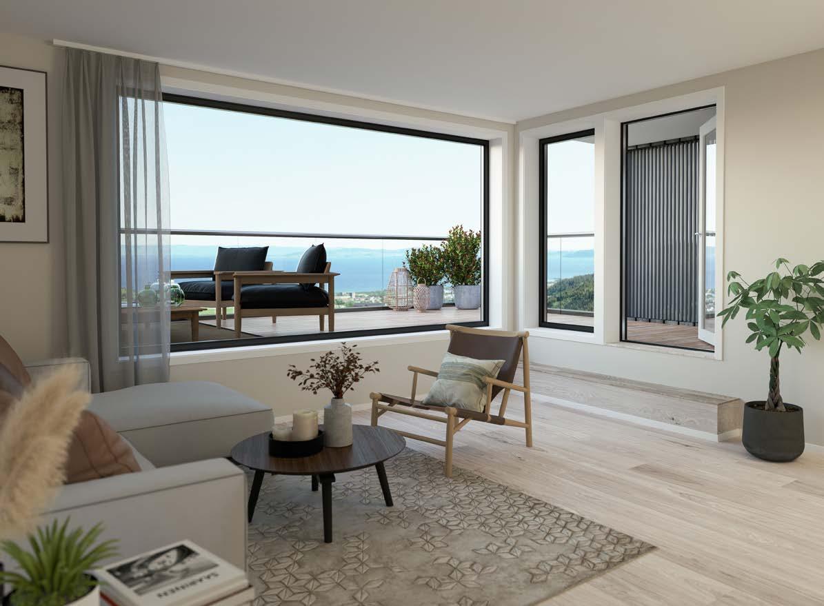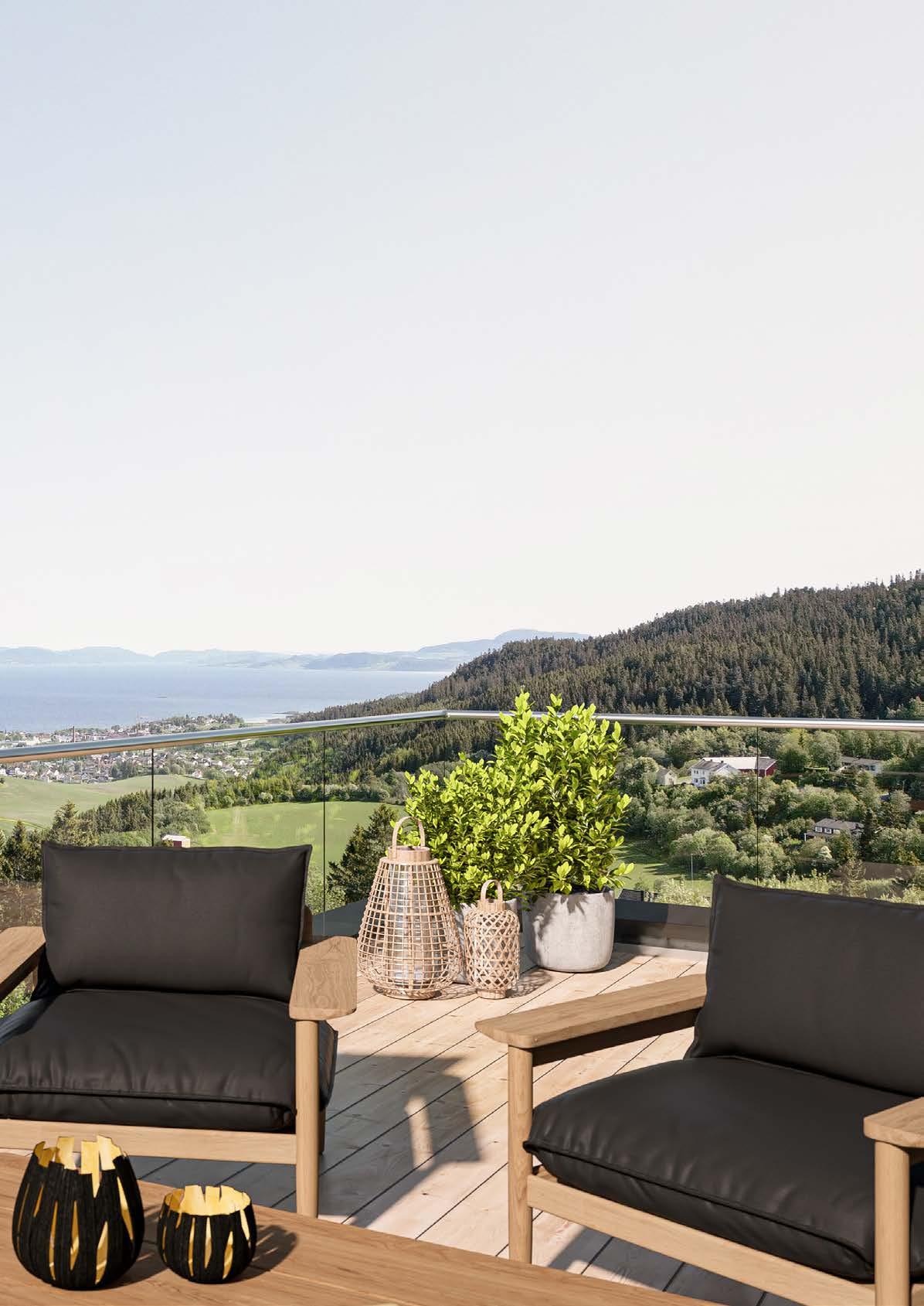 Boligene er nøye planlagt og designet for å maksimere utnyttelsen av de fantastiske solforholdene. Her kan du nyte solen fra morgen til kveld. Den store terrassen byr på panoramautsikt over fjorden og omgivelsene, og gir deg det ideelle uterommet for å invitere venner og familie når sommeren er på sitt beste.