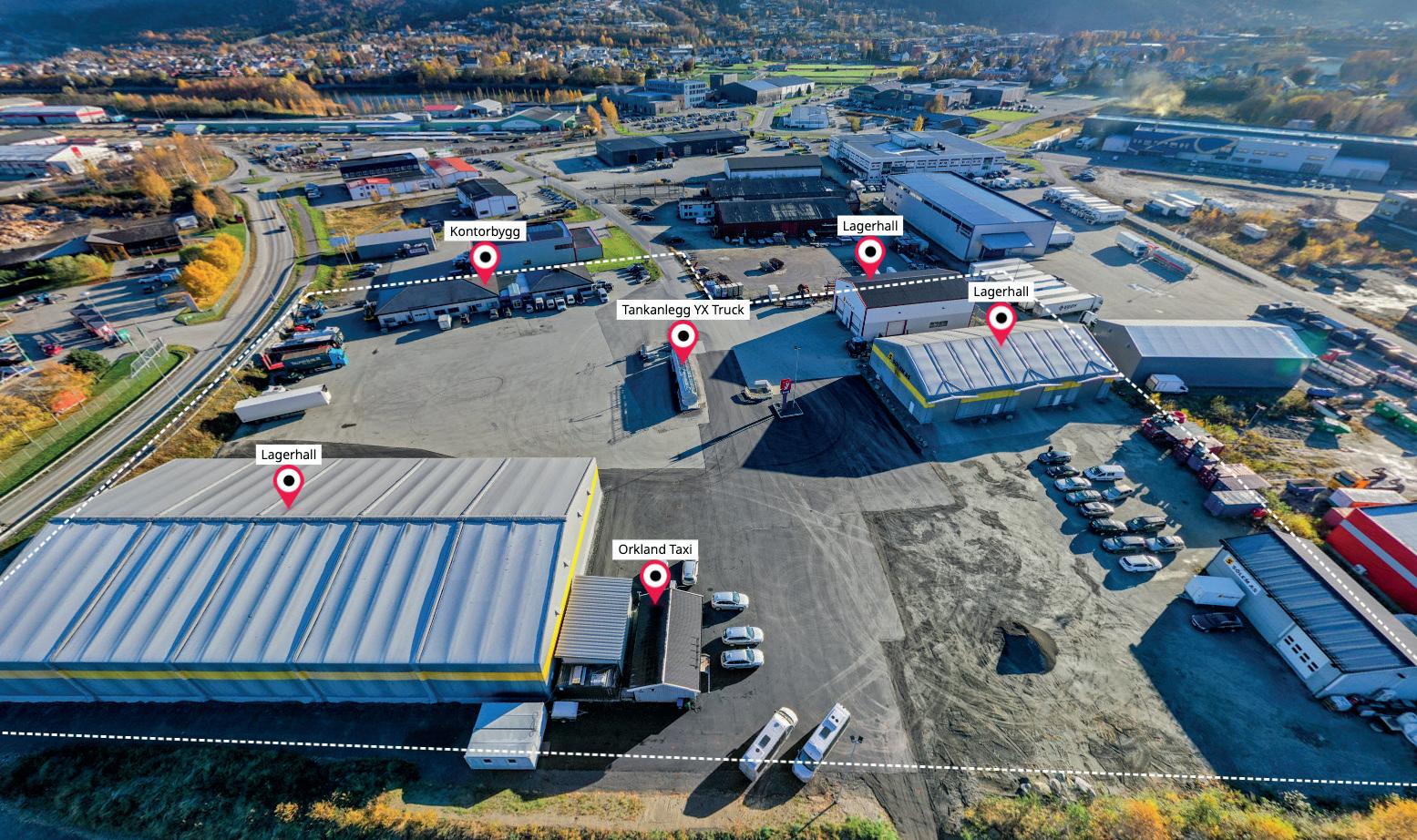 Bare på denne eiendommen finner vi følgende bedrifter: Sutra Hoston AS (transport og kurs)
