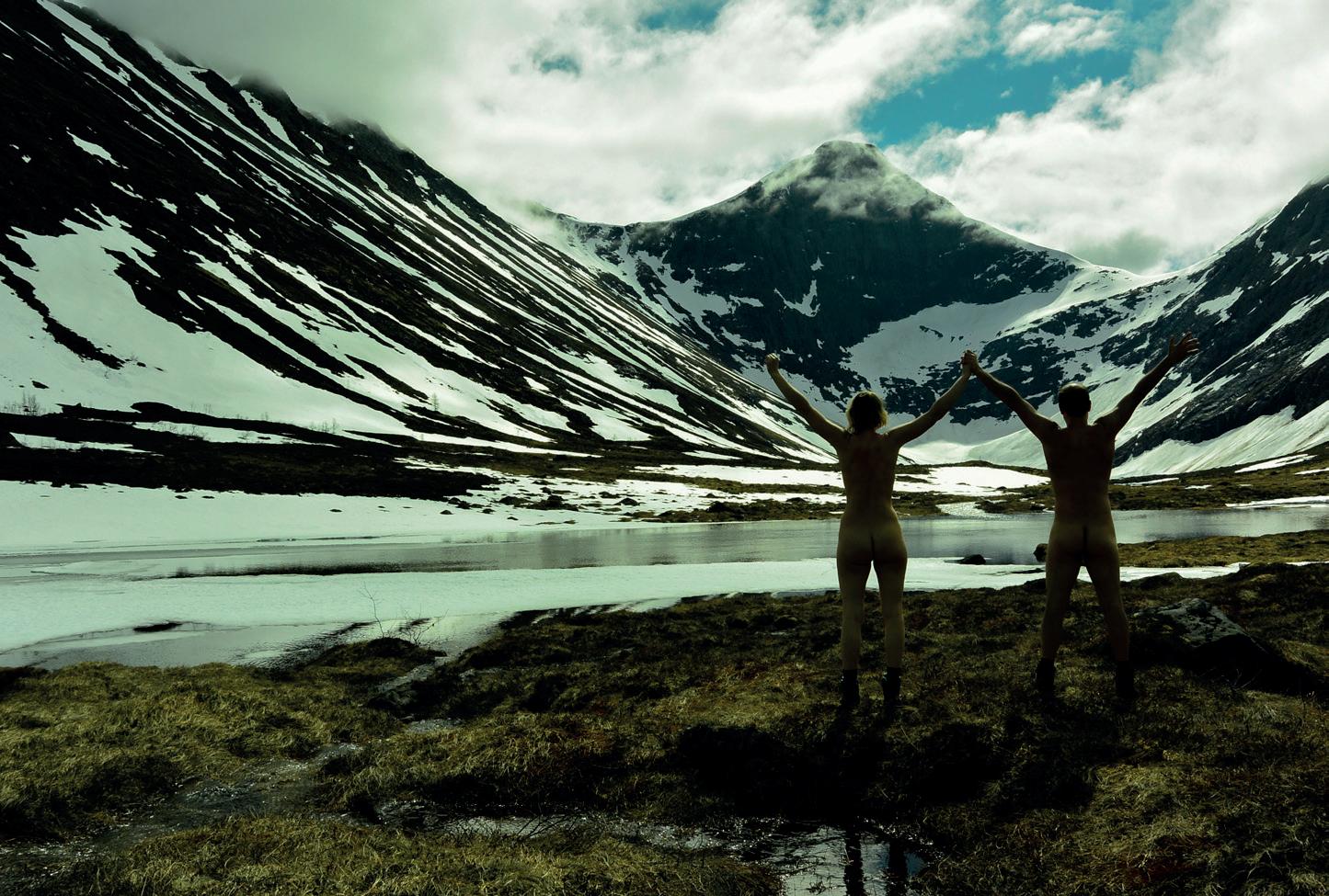 soverommet, viser paret nakne på diverse fjelltopper og naturområder.